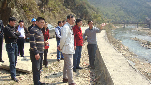 周副巡視員一行首先來到我司承建的三清山了楓林防洪工程施工現(xiàn)場(chǎng),詳細(xì)的詢問、了解楓林防洪工程的施工進(jìn)展情況,對(duì)公司楓林防洪工程施工項(xiàng)目部的工作給予了肯定,她認(rèn)為工程建設(shè)的很好,特別是外觀很漂亮,符合景區(qū)要求。并現(xiàn)場(chǎng)協(xié)調(diào)解決工作中遇到的問題和困難,研究部署下一階段的相關(guān)工作。隨后,周副巡視員與三清山管委會(huì)楓林辦事處及各參建單位代表進(jìn)行了座談,聽取了水利工程建設(shè)情況匯報(bào)。周副巡視員要求三清山管委會(huì)以水利工程建設(shè)帶動(dòng)重點(diǎn)示范鎮(zhèn)建設(shè)要克服困難,抓緊完成征地拆遷任務(wù),確保工程順利施工;要求各參建單位繼續(xù)保持協(xié)調(diào)合作,確定工期目標(biāo),確保工程質(zhì)量和安全。她指出,省水建公司作為承建單位,要繼續(xù)發(fā)揚(yáng)能打硬仗的優(yōu)良傳統(tǒng),按目標(biāo)計(jì)劃倒排工期,精心組織施工,將楓林防洪工程打造成服務(wù)民生和景區(qū)生態(tài)、人水和諧的精品工程。