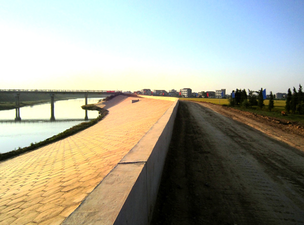 混凝土預制塊護坡與防浪墻外貌