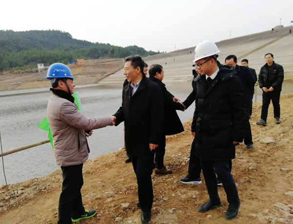 2月2日,江西省水利廳廳長羅小云在上高縣縣長胡海洋、公司總經(jīng)濟師孫八根等領(lǐng)導(dǎo)陪同下深入我公司上高縣城區(qū)供水引水管網(wǎng)工程施工現(xiàn)場,視察指導(dǎo)工程建設(shè)管理及安全生產(chǎn)工作。